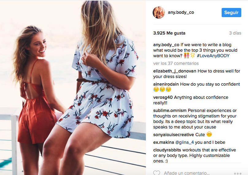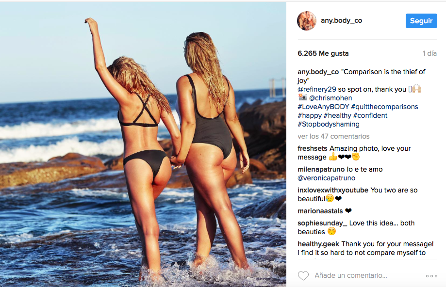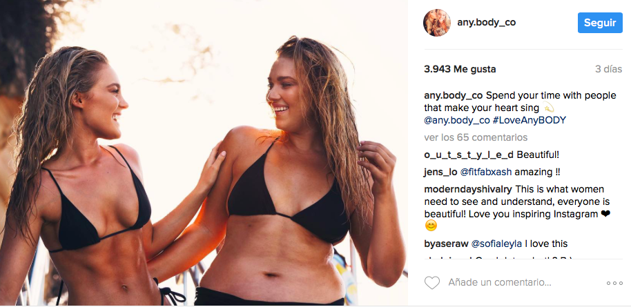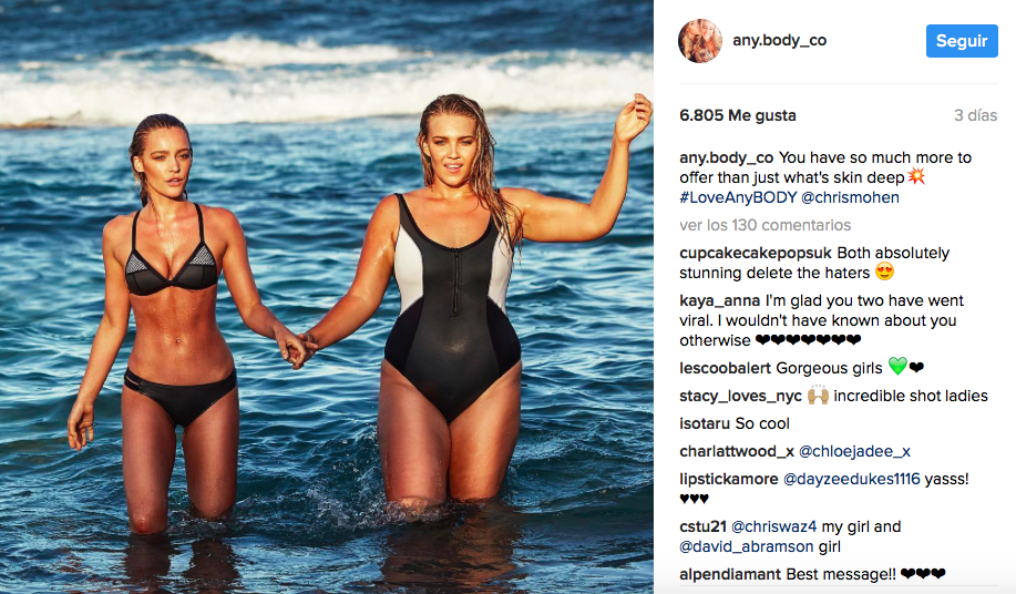 Rápidamente se manifestaron en sus redes sociales. "Ese comentario me rompió el corazón, porque Kate y yo somos mejores amigas, ¿por qué haría algo así? El hecho de que una simple fotografía de dos personas juntas se vuelva viral sólo por el tipo de cuerpo que tienen me impactó, y Any.Body fue creado para que nadie tenga que luchar contra eso", indicó.