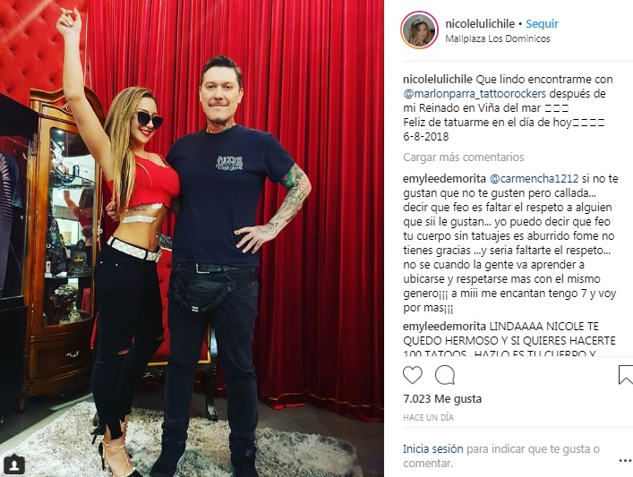 Tras la publicación, Nicole recibió una serie de comentarios negativos por tatuarse otra vez: "Linda , no te hagas tatuajes, tienes tan linda piel y la daños con eso"; "No la caguis pos Luli, no estropees tu hermoso cuerpo", "No hay nada más lindo que un cuerpo libre de tatuajes", "Nicolita no se llene de tantos tatuajes por fis..te ves hermosa así", fueron sólo algunos de mensajes que recibió.
