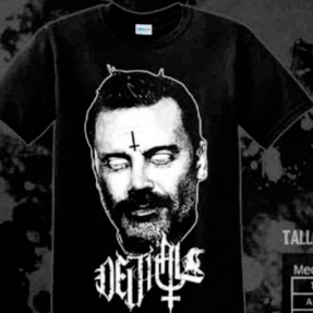 Pero no es una polera cualquiera ya que, la marca puso la cara del animador con una cruz invertida en su frente y los ojos blancos.