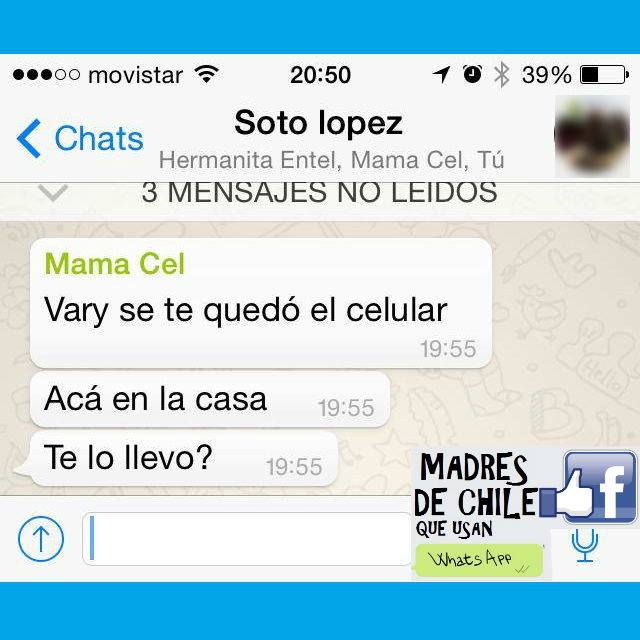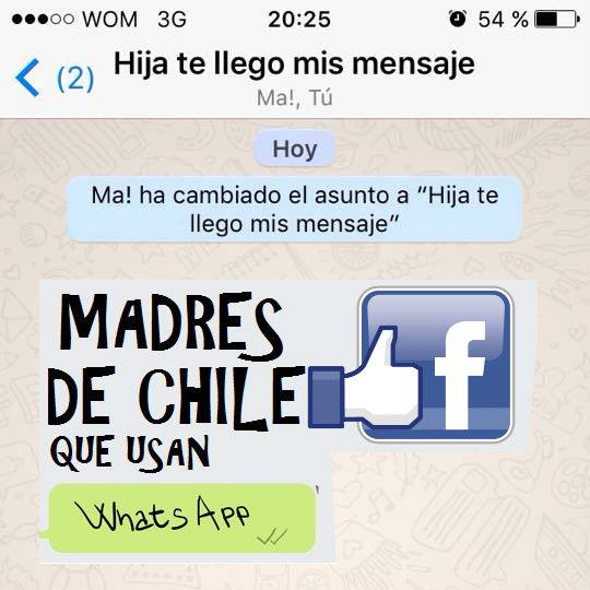 Suele pasar que uno le manda un Whatsapp a la mamá y por muchos minutos vemos "escribiendo....." en la pantalla. Después de un largo rato, recibimos un breve "hola". La página de Facebook Madres de Chile que usan Whatsapp reúne este tipo de anécdotas que frecuentemente ocurren durante las conversaciones virtuales con nuestras madres (lee nuestra nota acá).