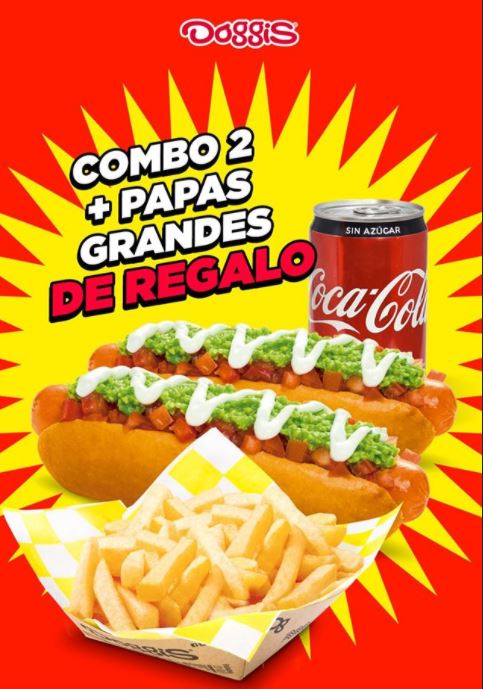 - Doggis: Al comprar el Combo 2, se te regalará una porción grande de papas fritas.