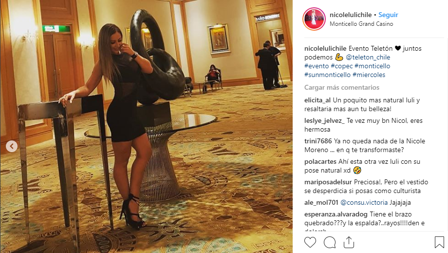 Sin embargo, en la previa de la Teletón, Moreno compartió fotos de un evento realizado en el casino Monticello. En las fotos, Nicole posa mostrando su vestido, siendo nuevamente criticada por verse "poco natural".