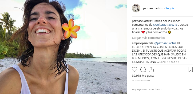 Y alejada de los malos números (en rating) que tenía la teleserie "Soltera Otra vez 3". La actriz nacional, Paz Bascuñán, se tomó unas vacaciones en un destino de ensueño.