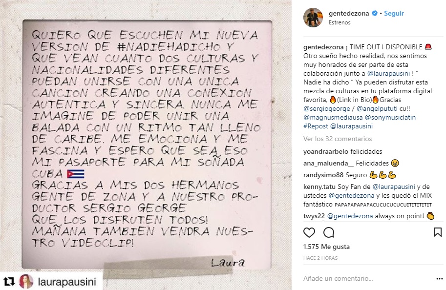 Por su parte, los cubanos expresaron: "Otro sueño hecho realidad, nos sentimos muy honrados de ser parte de esta colaboración junto a Laura Pausini".