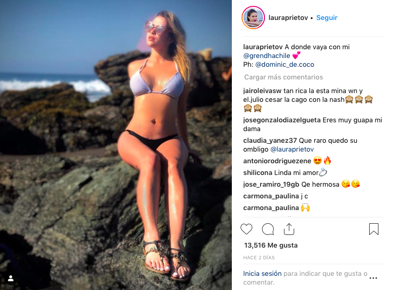 En la primera foto la vemos posando de frente sentada en una roca. Las acusaciones sobre el exceso de retoque en la imagen no se hicieron esperar y Laura recibió comentarios del tipo "Horrible el Photoshop, yo muestro orgullosa mi guatita" o "Laurita todas tenemos nuestros "detallitos" solo depende de nosotras aceptarlos,sobre todas las que hemos sido mamás".