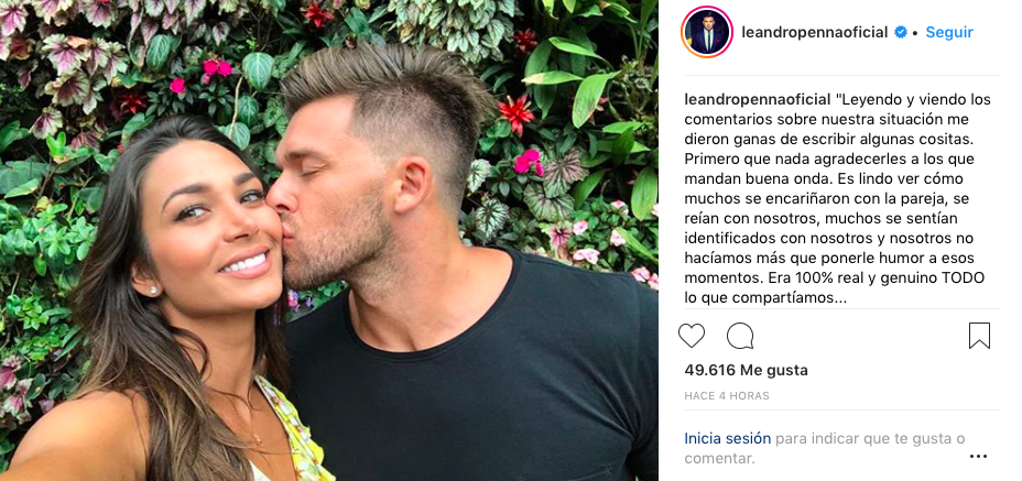 A través del mismo mensaje, Leandro explicó las verdaderas razones del quiebre: "Somos dos personas que se eligieron hace 1 años y 5 meses con mucho amor y hoy deciden no estar más juntos JUSTAMENTE (y valga la redundancia) por el amor y el respeto que le tenemos a nuestra historia.Existen miles de factores en una relación, a veces la acumulación de pequeñas cosas terminan matándola por mucho más amor que exista entre los dos. Y es en ese preciso momento donde por AMOR y cuidado a lo lindo que tuvimos juntos decidimos soltarnos. Por que AMAR también es eso. Tener la capacidad y la inteligencia emocional justa para poder ver y entender que es LO MEJOR PARA EL OTRO. Solo eso".