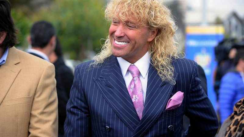 Vestido con un traje de Dolce&Gabbana y llamativos zapatos brillantes de Louis Vuitton, el empresario apareció en una limusina marca Lincoln MKT, que posteriormente lo llevó al bar Harry’s del Hotel O’higgins.