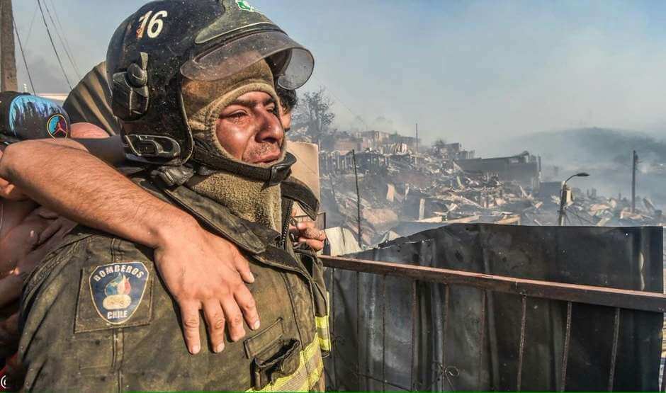 Juan Carlos Espinoza, voluntario de la 16ª Compañía de Bomberos de Valparaíso, fue uno de las cientos de personas que lo perdió todo en el incendio que afectó a la comuna de Valparaíso durante la tarde del lunes. Sin embargo, y a pesar de su situación decidió seguir ayudando para que sus vecinos pudieran salvar sus viviendas.