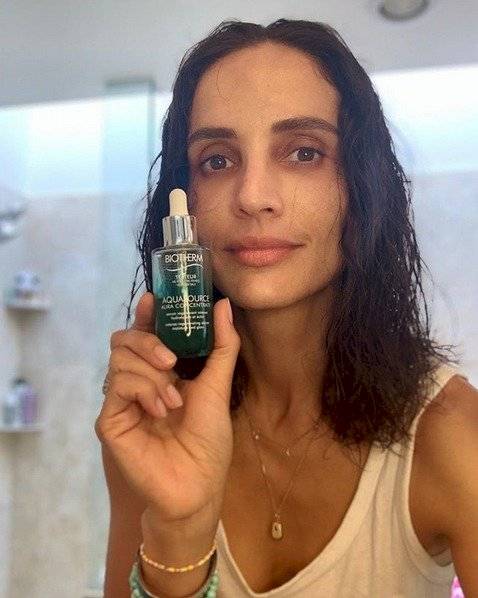 "Aquí cara lavada, sin filtro ni retoque. Lo más importante para mi piel es la hidratación y luminosidad. Por eso encontré exactamente lo que busco en este serum. Además viene en un botella de vidrio lo que permite minimizar el uso de plástico!", fue el mensaje con que acompañó la imagen.