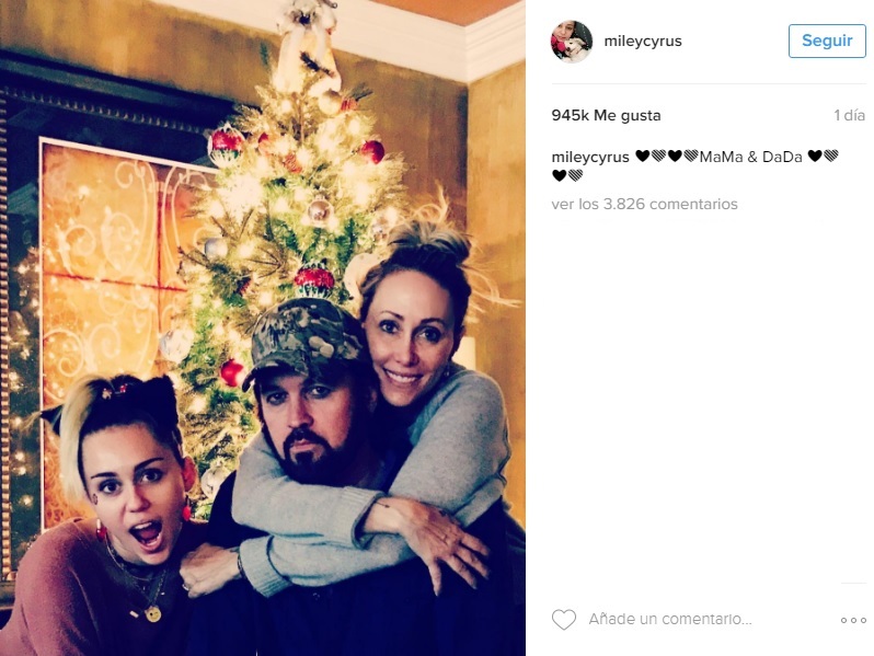 Pero eso no es todo porque la ex chica Disney también aprovechó de publicar una fotografía en su Instagram, donde aparece junto a sus padres: Billy Ray y Tish Cyrus. ¡Qué lindos!