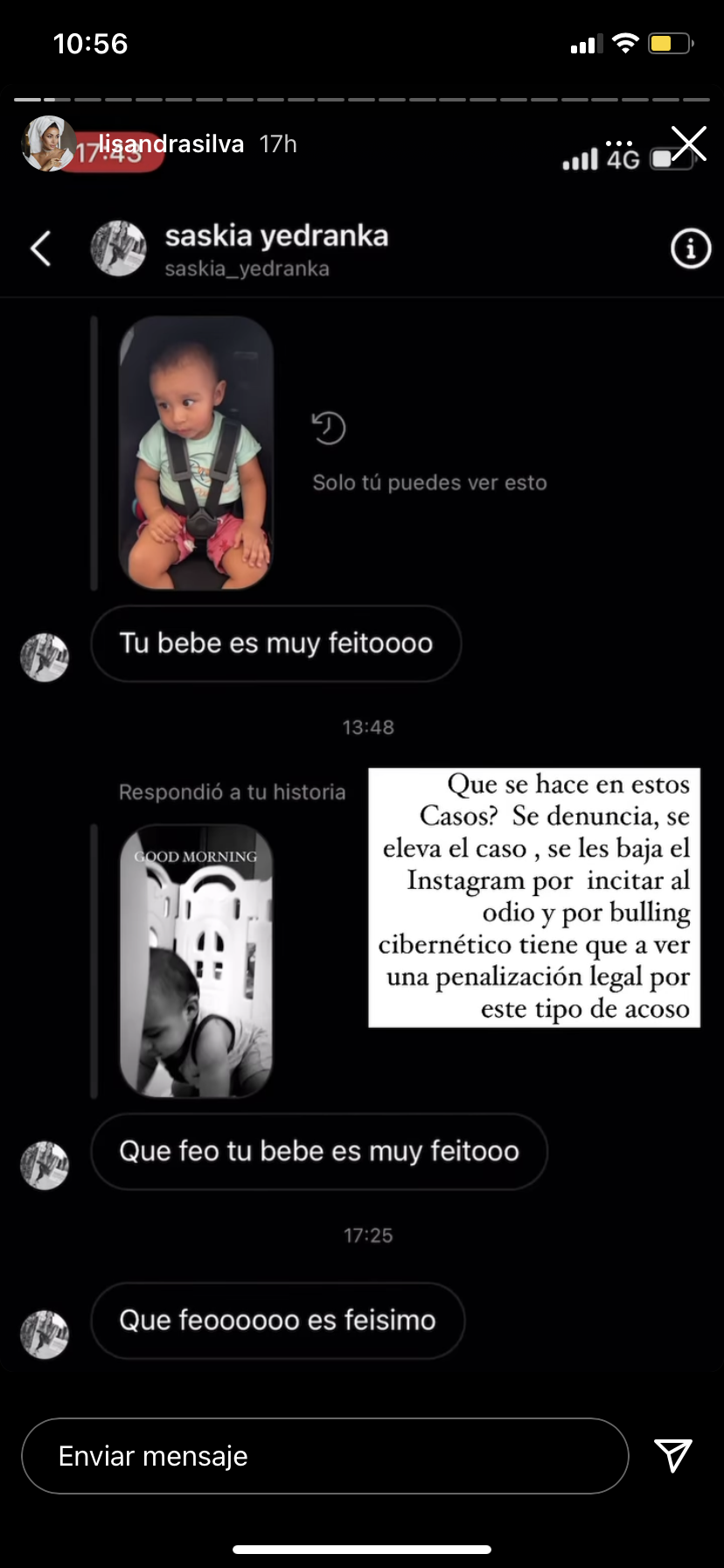 De hecho, Lisandra ha compartido pantallazos de distintas personas que tratan a su hijo de 'feo'.