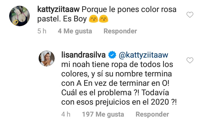 'Mi Noah tiene ropa de todos los colores. Y si su nombre termina con A en vez de terminar en O! ¿Cuál es el problema ?! Todavía con esos prejuicios en el 2020?!', reaccionó Lisandra.