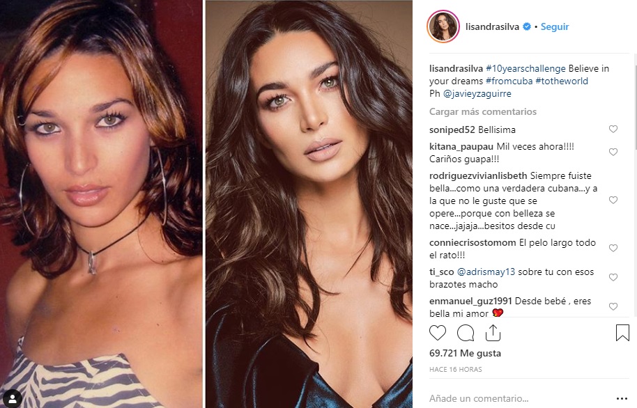 “#10yearschallenge Believe in your dreams #fromcuba #totheworld (Cree en tus sueños)”, fue el mensaje que acompañó las fotos que fueron rápidamente comentadas por sus seguidores, que tuvieron diversas reacciones, unos halagando su belleza y otros asegurando que se sometió a alguna intervención estética.