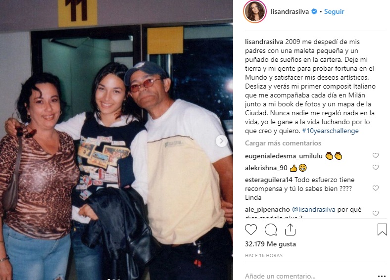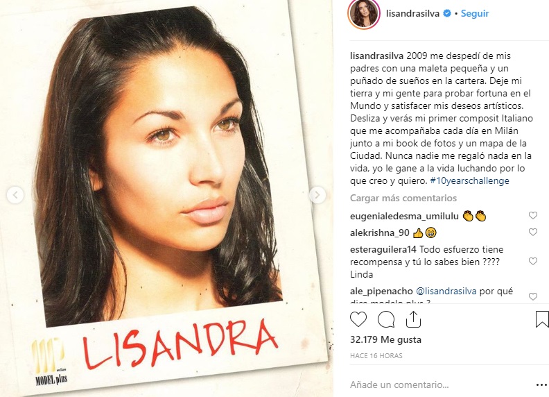 "2009 me despedí de mis padres con una maleta pequeña y un puñado de sueños en la cartera. Deje mi tierra y mi gente para probar fortuna en el Mundo y satisfacer mis deseos artísticos. Desliza y verás mi primer composit Italiano que me acompañaba cada día en Milán junto a mi book de fotos y un mapa de la Ciudad. Nunca nadie me regaló nada en la vida, yo le gane a la vida luchando por lo que creo y quiero", compartió la ex "Doble tentación".