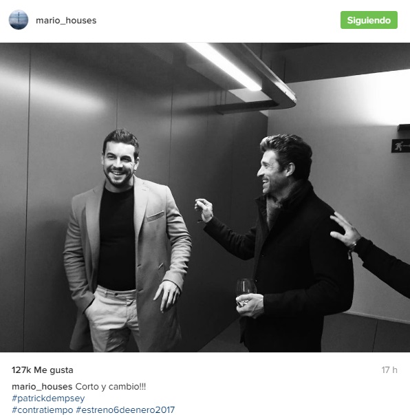 Así, el guapo español anduvo en Barcelona, donde también aprovecho de disfrutar de una sus pasiones, el fútbol. Por esto, asistió al partido de la Champions League, entre el F.C. Barcelona y el Borussia Monchengladbach. Y cuando estaba en eso, se encontró con un colega, otro galán del cine: nada menos que el actor Patrick Dempsey.
