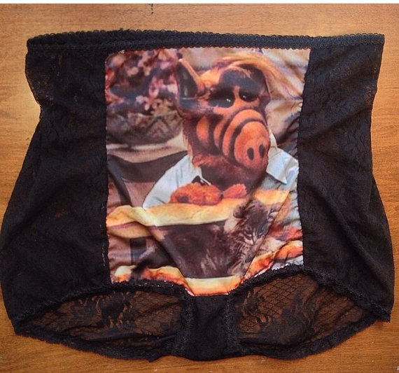 Aunque no lo creas la marca Etsy desarrolló una línea de ropa interior muy diferente con personajes de televisión como las protagonistas de la series "Las chicas de Oro" o el mítico personaje "Alf".
