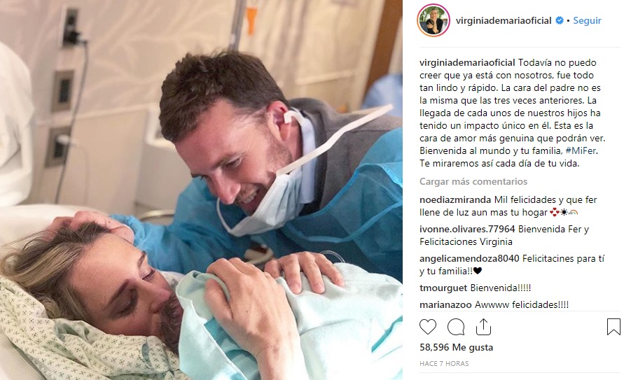 "Bienvenida al mundo y tu familia, #MiFer. Te miraremos así cada día de tu vida", fue como finalizó Virginia su publicación, que ya acumula sobre 58.000 "Me Gusta" y está repleta de comentarios de felicitaciones.