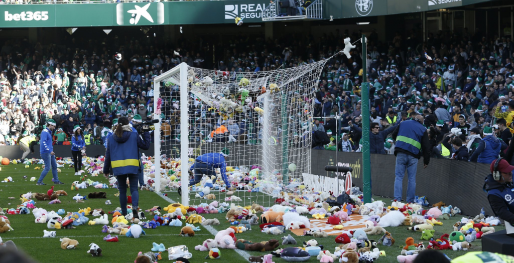 Este sábado, en el partido que tuvieron el Real Betis y el Eibar por la liga española se vivió un escenario inesperado. El club había realizado un llamado a que los espectadores asistieran al encuentro con un peluche para regalarlo a niños de escasos recursos de Sevilla, ciudad donde el equipo es local.