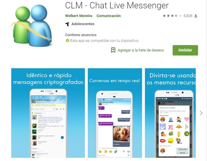 En la descripción se lee: “Para seguir en contacto con tus amigos y familia recordándote la antigua y larga aplicación de mensajería instantánea. Envío de imágenes, guiños de video y más”.