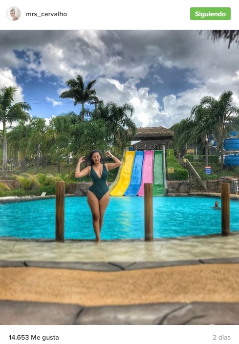 Pero la imagen, donde se le ve luciendo un traje de baño verde en una parque acuático, provocó comentarios de negativos de algunos pocos seguidores que la criticaron por su peso.