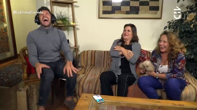 Antes de pasar al postre, Eli decidió realizar un entretenido juego, el que consistía en ponerle a una persona audífonos con música fuerte y que a otra le asignaran una canción para que hiciera las mímicas y así adivinaran cuál era.