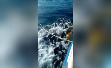 El hecho fue grabado ayer por pescadores de la zona, pertenecientes a la tripulación de la lancha María Jesú y fue compartido por BioBioChile,.