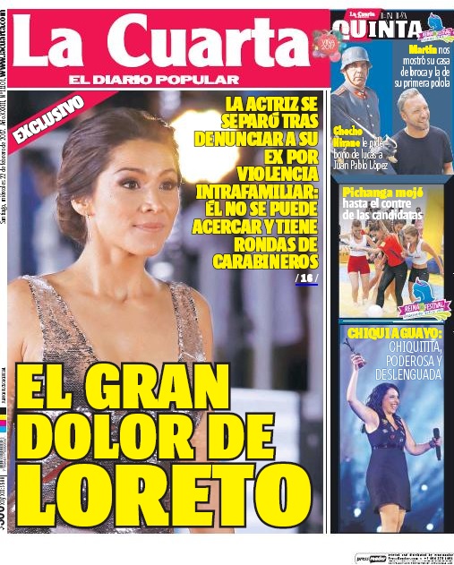 Loreto Aravena protagonizó la portada del diario "La Cuarta" de este martes con una lamentable noticia: la actriz habría denunciado a su esposo, Juan Pablo Ternicier, por violencia intrafamiliar.