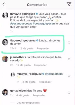 "Linda... rincones de amor", fue su comentario, el que no tuvo respuesta de Mayte. Es más, el mensaje ahora fue borrado.