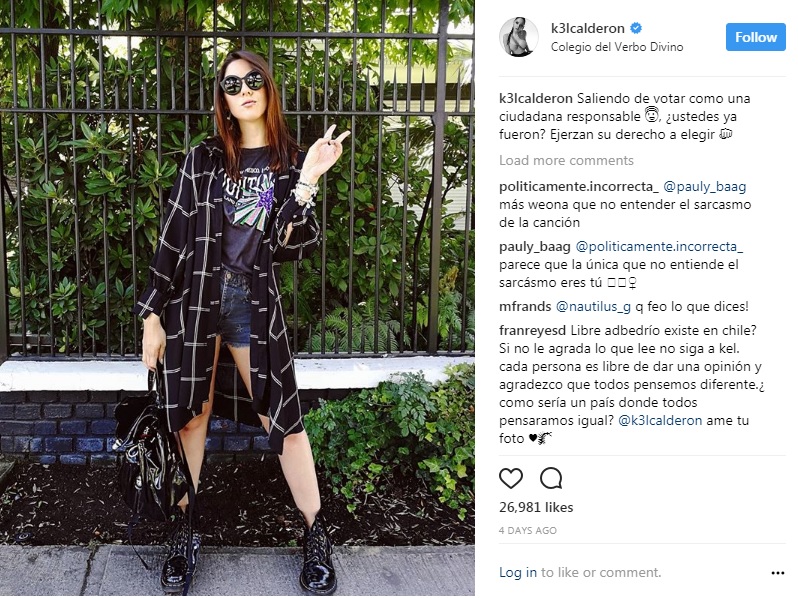 Uno de los rostros más conocidos en dar su opinión fue la Kel Calderon, quien además fue criticada por dar a conocer su preferencia política. "Para encontrar un candidato que me represente 100% tendría que postular yo. Es importante que aunque ninguno de los dos candidatos te represente al 100, uno sea capaz de encontrar al que se acerca más a tu visión país a pesar de que existan diferencias de opinión". señaló la también cantante.