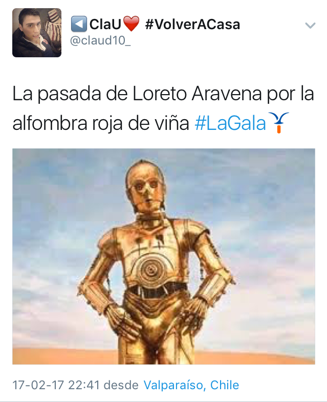 El viernes 17 de febrero se vivió una nueva gala previa al Festival de Viña del Mar y aunque algunos deslumbraron en la alfombra roja, otros fueron criticados en redes sociales, pero con humor. Te dejamos aquí los mejores memes de la #GalaViña2017