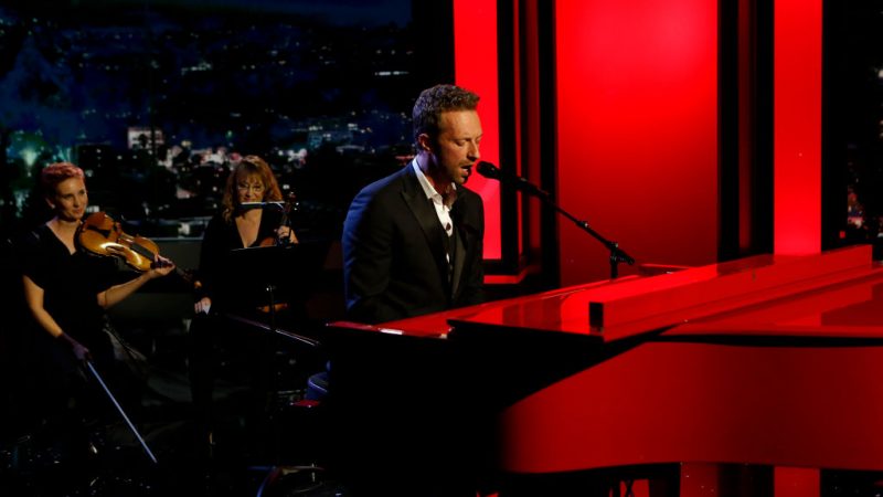 Chris Martin ya comenzó a celebrar la Navidad porque se presentó en el programa televisivo de Jimmy Kimmel y se unió a la voz de Bono, el vocalista de U2, y del actor Sean Penn para interpretar "One for my baby" de Frank Sinatra.