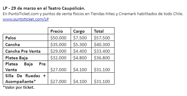 Cabe recordar que LP debutó en Chile el 2019, con dos elogiados shows que se vendieron en tiempo récord.
