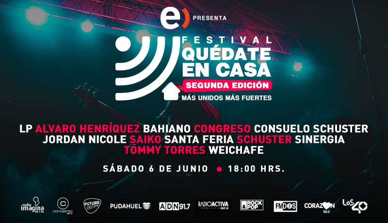Quédate En Casa 2 tendrá lugar el próximo sábado 6 de junio.a partir de las 18 horas. La iniciativa es el primer festival por streaming de Chile 100% hecho desde casa y lo podrás disfrutar en nuestras frecuencias y Facebook Live.