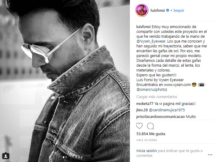 "Por eso, me pareció genial crear mi propio modelo. Diseñamos cada detalle de estas gafas desde la forma del marco, el lente, los materiales y colores. Espero que les gusten!!! Luis Fonsi by Vysen Eyewear", escribió el puertorriqueño para acompañar una foto promocional de los anteojos.
