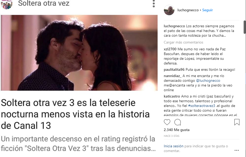 A través de su cuenta de Instagram, el actor hizo sus descargos sobre la producción que protagoniza Paz Bascuñán, liberando de culpa a los intérpretes que dan vida a la teleserie.