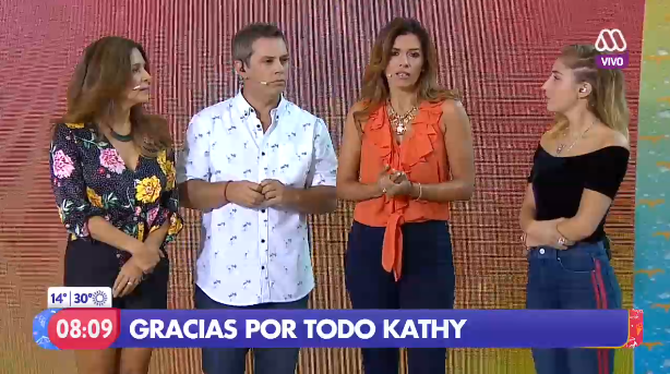 Este viernes, tras la noticia, sus ex compañeros le dedicaron unas palabras de despedida. "Queremos expresar nuestro cariño, enviar un abrazo fuerte a quien fuera la mujer que le puso el sello (al programa) durante 5 años (...) Y hoy, aunque somos muchos en pantalla, siempre cuando alguien no está la ausencia se siente, porque lo que entrega una persona no lo puede dar nadie más, y lo que entregó Kathy en el programa no lo puede entregar nadie más", dijo Karla Constant.
