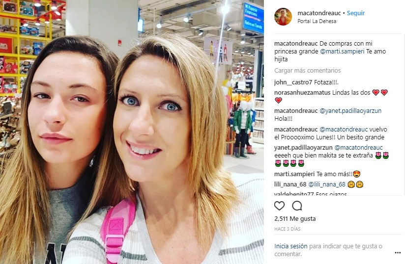 Macarena Tondreau, quien no acostumbra a publicar fotos con sus retoños mayores, sorprendió a sus seguidores de Instagram al compartir una imagen junto a su hija Martina.