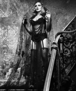 En el magazine se puede apreciar a la cantante con atuendos provocadores en una escenografía que rememora épocas antiguas.