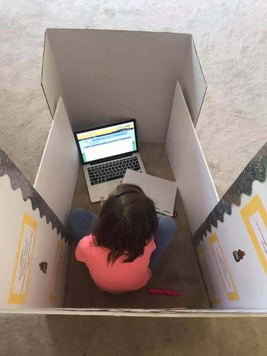 Por lo demás, la mujer mostró en redes sociales la decisión que tomó luego de este episodio. Creó cubículos de cartón y con fondo blanco para las videollamadas de sus hijas.