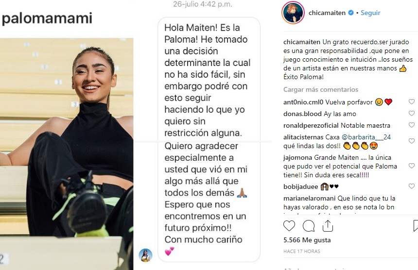 La otrora presidenta del jurado del programa "Rojo" en su primer ciclo desclasificó un sentido mensaje que le envió Paloma Mami, al momento de decidir dejar el show de talentos.