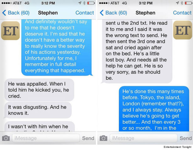 Además de las acusaciones que había hecho la actriz y las declaraciones de su abogado, aún no existen pruebas suficientes para declarar culpable al protagonista de "Piratas del Caribe". Sin embargo, hace algunas horas Heard hizo público al sitio Etonline.com, unos mensajes que le habría enviado Stephen Deuters, representante del actor, cuando la golpeó antes de que se casaran en el 2014.