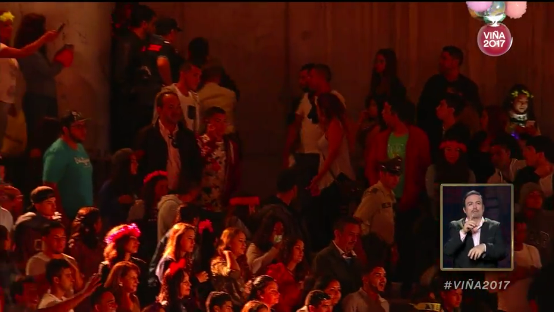Pero, lo que marcó la noche fue el momento en que el público empezó a pifiar y gritar "Y fuera" durante la rutina de Villegas, lo cual puso muy nervioso al humorista, por lo que tuvieron que ingresar los animadores al escenario y explicar que habían "problemas de seguridad" en la galería y de hecho entraron Carabineros para llevarse a los que estaban generando conflictos en la Quinta Vergara.