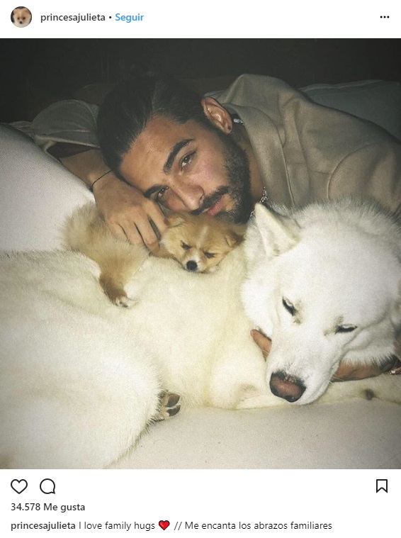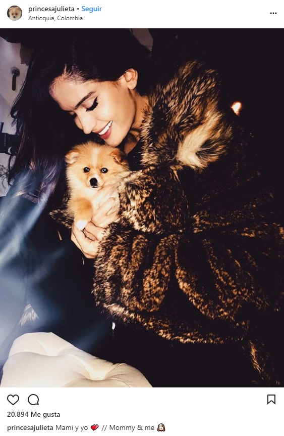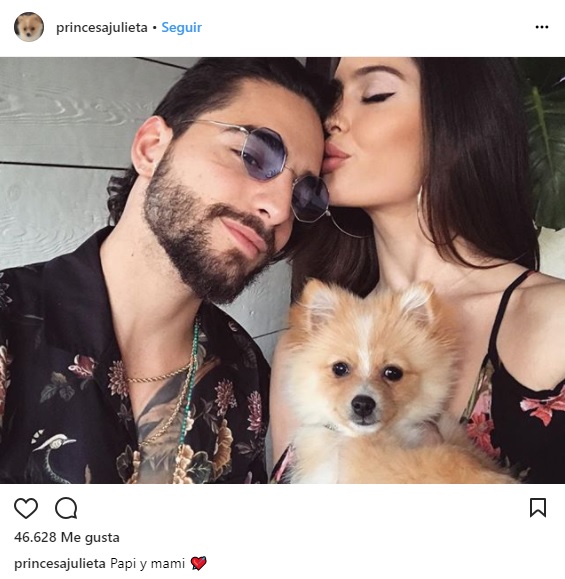Por lo mismo, en esta ocasión la modelo y el cantante posaron junto a su hija, una perrita de raza Pomeriana llamada Julieta. La imagen fue publicada en el Instagram oficial de la mascota que ya tiene más de 46 mil likes. "Papi y mami", se lee al pie de la fotografía donde aparece la pareja junto a la hija perruna.