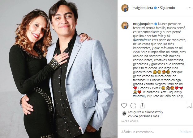 'Nunca pensé en tener mi propia familia, nunca pensé en ser comediante y nunca pensé que iba a ser tan feliz y tú, Sergio Freire, eres parte de todo esto, de las cosas que son las más importantes, y que más amo en mi vida!', comienza el relato.