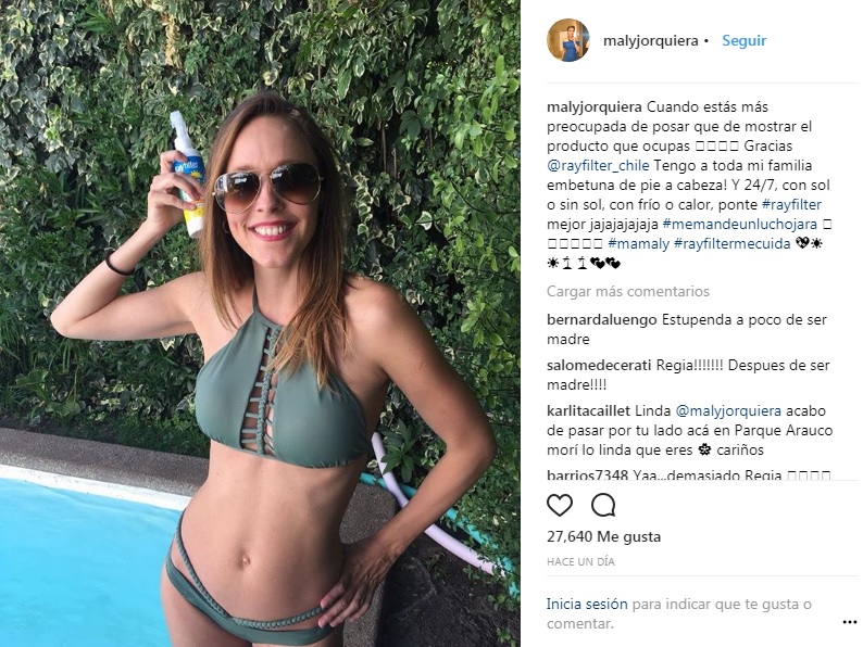 La guapa Maly compartió una foto veraniega disfrutando de un entretenido día de piscina y que recibió cientos de comentarios por lo bien que se a sólo meses de haber tenido su primer hijo: "Estupenda a poco de ser madre", "egia!!!!!!! Despues de ser madre!!!!", "Te pasaste!!! Yo quedé igual despues de mi primer embarazo.... pero del segundo?", "Yegua regia...que envidia tu cuerpo", "Como pudiste quedar tan regia!!"