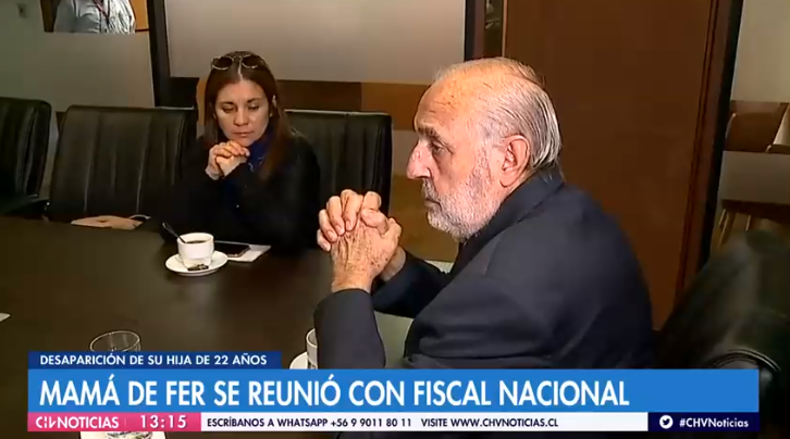 Este jueves, Paola Correa, madre de Fernanda Maciel, tuvo una reunión con el fiscal nacional para hablar sobre el caso de la desaparición de su hija que ya cumplió 14 meses desde que se le perdió el rastro en Conchalí el 10 de febrero de 2018.