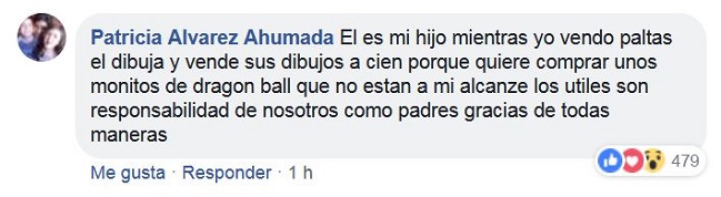 Tras lo raro de la situación una mujer comenzó a comentar en las notas de los medios de que ella era la madre del menor y que la venta de dibujos era porque él quería comprarse juguetes.