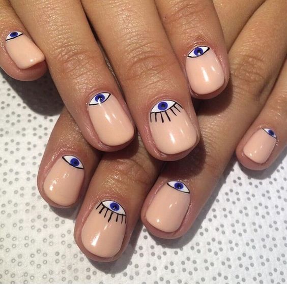 Corresponde a un nail art llamativo y original, posible de personalizar pintando los ojos de distintos colores o incorporándolos solo en algunas uñas.