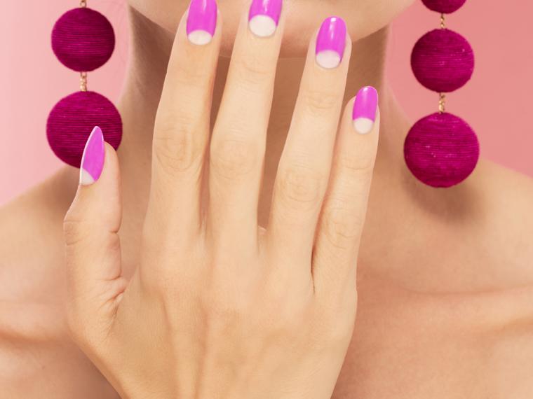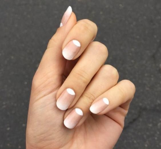 También conocida como uñas en medialuna, la manicure francesa invertida altera el orden del esmaltado original.