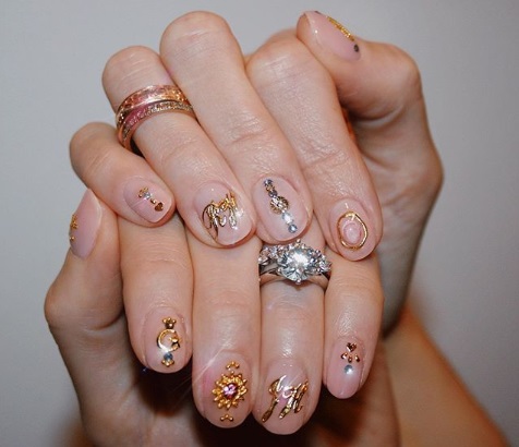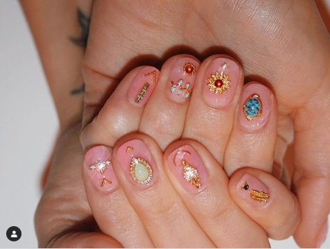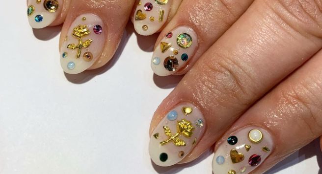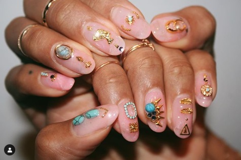 Se trata de la manicure tesoro, que basa su estética en pequeñas gemas colocadas sobre las uñas.